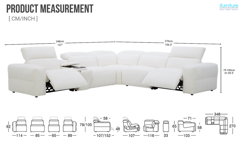 Crafted with soft, durable fabric and a blend of foam and soft fibers, this modular sofa provides a luxurious seating experience. The power reclining mechanism allows effortless adjustment for ultimate comfort, while the built-in console offers wireless charging, a cupholder, and storage for added convenience. Its sleek, modern design with neutral tones complements any contemporary living space, and the customizable layout ensures a perfect fit for your home.
