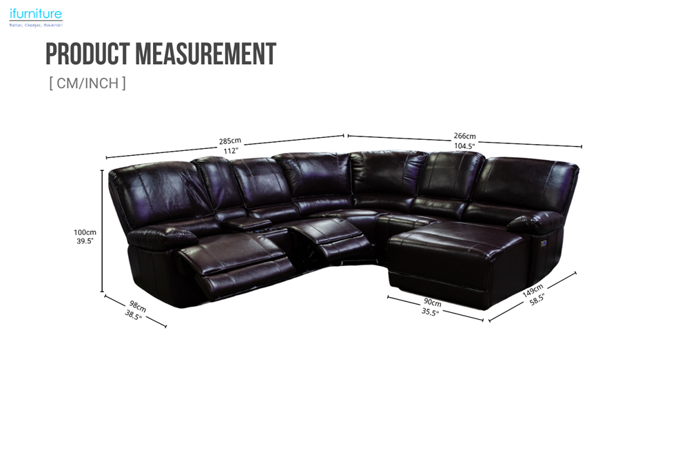 Experience the ultimate in comfort and modern style with the Orren Air Leather Sectional Power Reclining Sofa. This luxurious piece features premium air leather upholstery and a sophisticated black finish. With its right-facing chaise, LED lighting for a vibrant ambience, a storage compartment and built-in cooling cup holders, this sectional offers unmatched relaxation. Designed with a combination of larch & and engineered wood frame, it ensures both style and functionality for any contemporary living room or entertainment space.