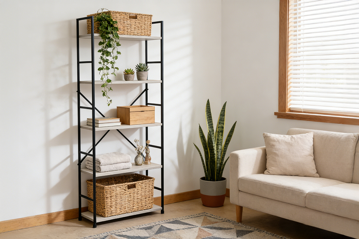 This 4-tier vintage bookcase combines sturdy metal and engineered wood for a sleek, stable design. Its X-shaped structure and padded feet ensure durability and scratch protection. With ample vertical storage space, it’s perfect for organizing books or plants while adding a cozy, retro touch to any room.