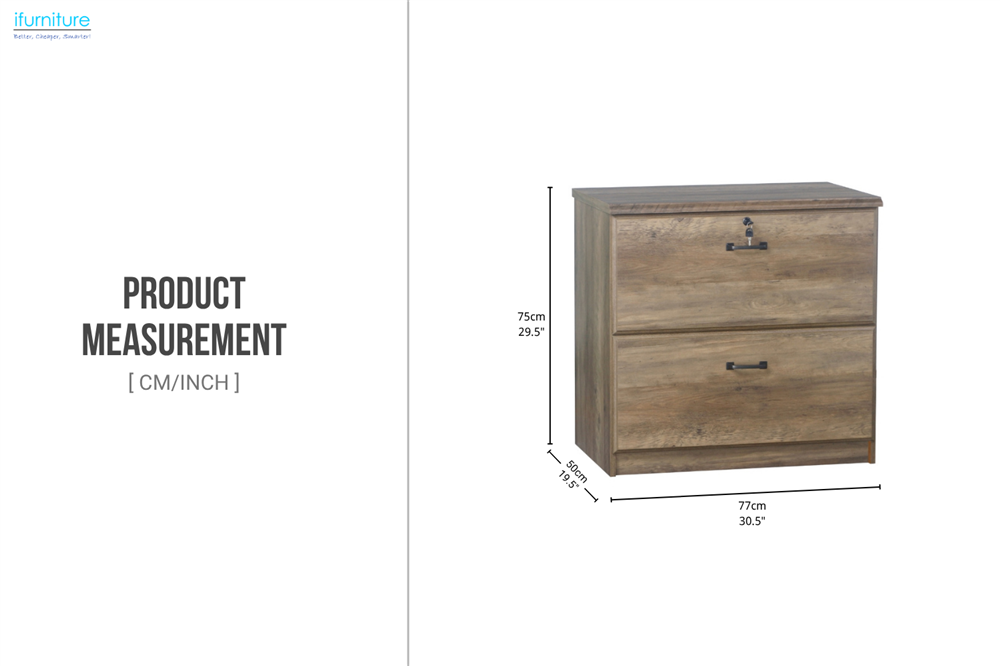 The Riverton 2 Drawer Cabinet in rustic oak offers a modern locking system, and full-extension drawers for organized storage. Its contemporary metal hardware and exquisite craftsmanship add style and functionality to any workspace.
