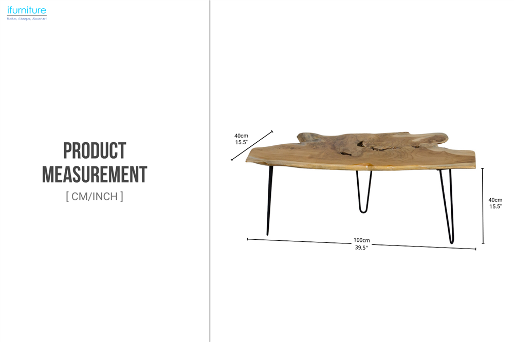 • Organic Sculptural Design: Features a uniquely irregular, natural wood top with live edges, making each table a one-of-a-kind statement piece.