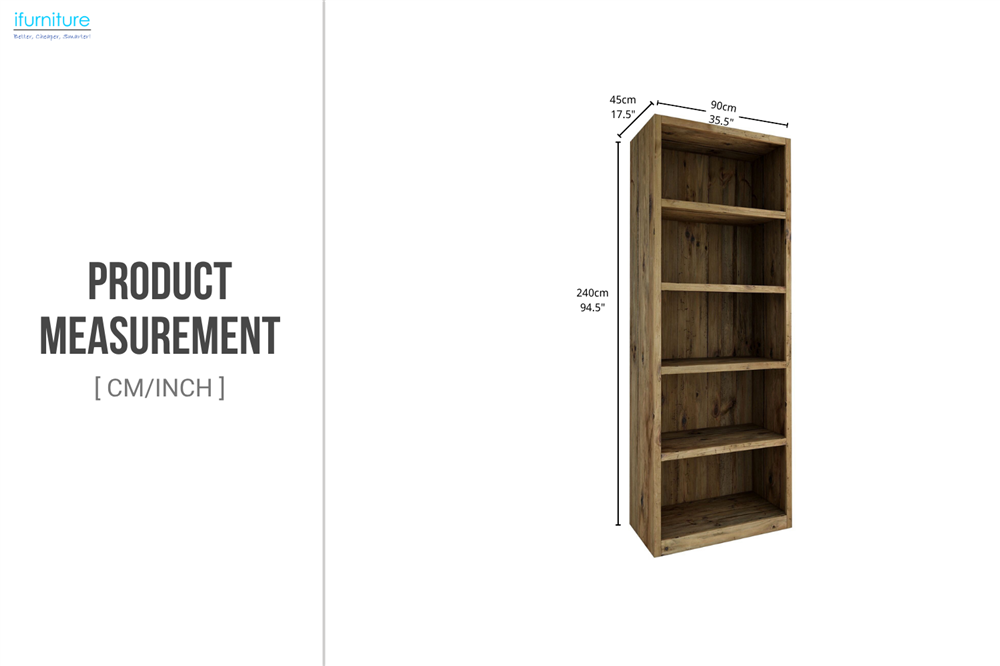 Elevate your living space with the TIMBERA 240x90cm 5-Tier Bookshelf, crafted from 100% reclaimed pine wood. This stylish and eco-friendly bookshelf offers ample storage with five spacious shelves, ideal for books, decor, and personal items. Its natural wood finish adds a rustic charm to any room, making it a perfect addition to modern, farmhouse, or industrial interiors.