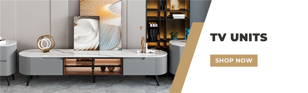 This TV unit features a durable engineered stone top and an extendable design to fit various space sizes. It includes two drawers for hidden storage, offering a clean, minimalist look that suits modern interiors.