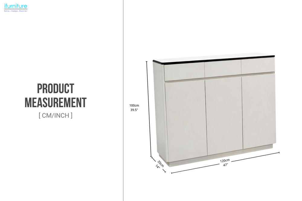 This shoe cabinet features a durable engineered stone top that resists scratches and stains. With three doors and three drawers, it offers generous storage for shoes, accessories, and essentials. Its sleek, minimalist design seamlessly complements modern interiors.