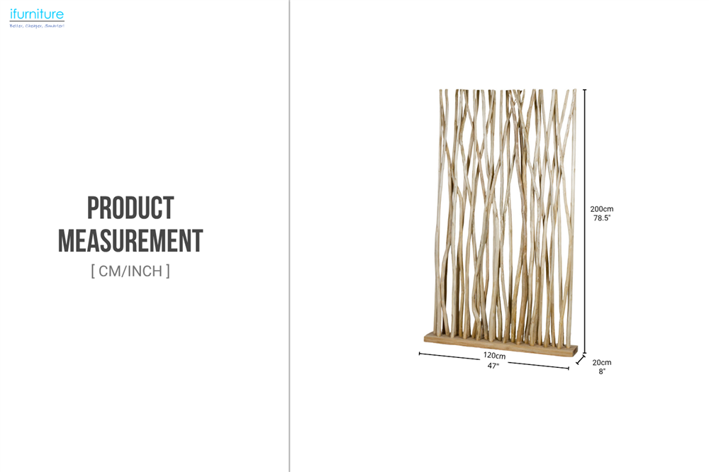 The Decorative Teak Screen is crafted from natural teak branches, combining rustic charm with functional design. Lightweight and versatile, it serves as a stylish room divider while bringing unique, organic beauty to any living space.