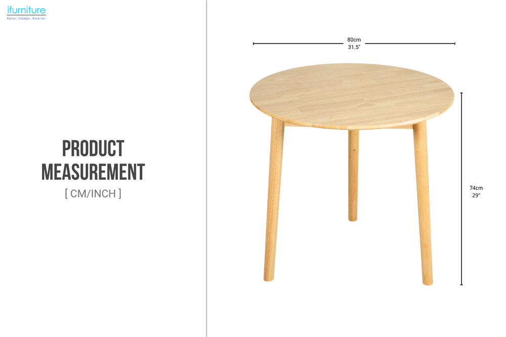 This round dining table is crafted from solid wood, offering natural strength, durability, and timeless appeal. The smooth sanded tabletop highlights the authentic wood grain, while its rounded, space-saving design ensures comfort and practicality. With a minimalist style, it fits seamlessly into modern, rustic, or Scandinavian-inspired interiors.