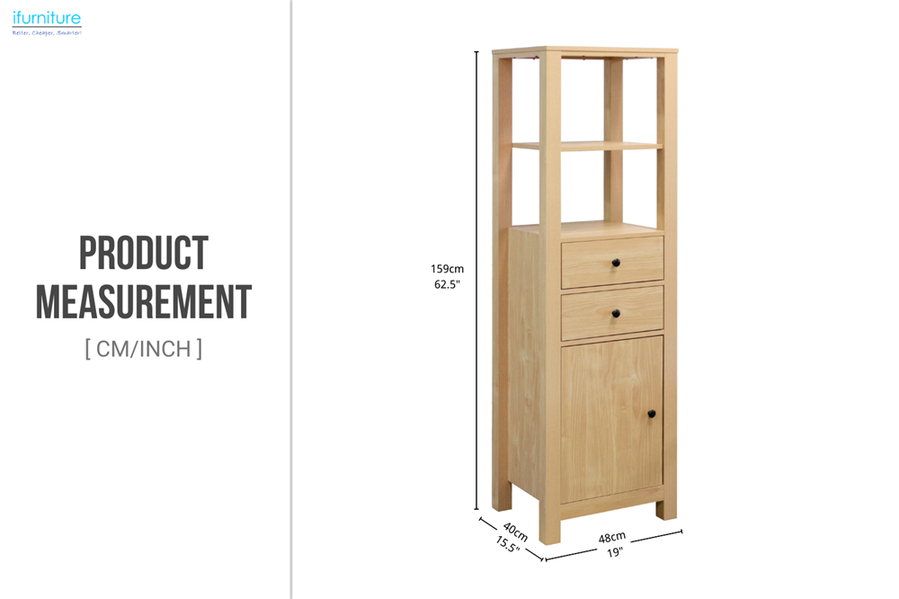• Versatile Storage: Features two drawers for concealed storage and a cupboard with a door for larger items, providing a mix of open and closed storage.