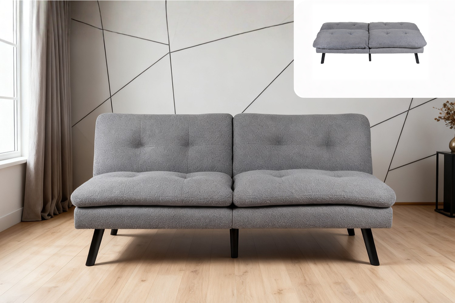 This Teddy Fleece Sofa Bed offers cozy comfort and modern simplicity. Wrapped in soft teddy fleece with high-density foam cushions, it provides a plush, supportive feel. Built with a sturdy engineered wood frame and metal legs, it easily converts from a sofa to a bed—perfect for guests or small spaces.