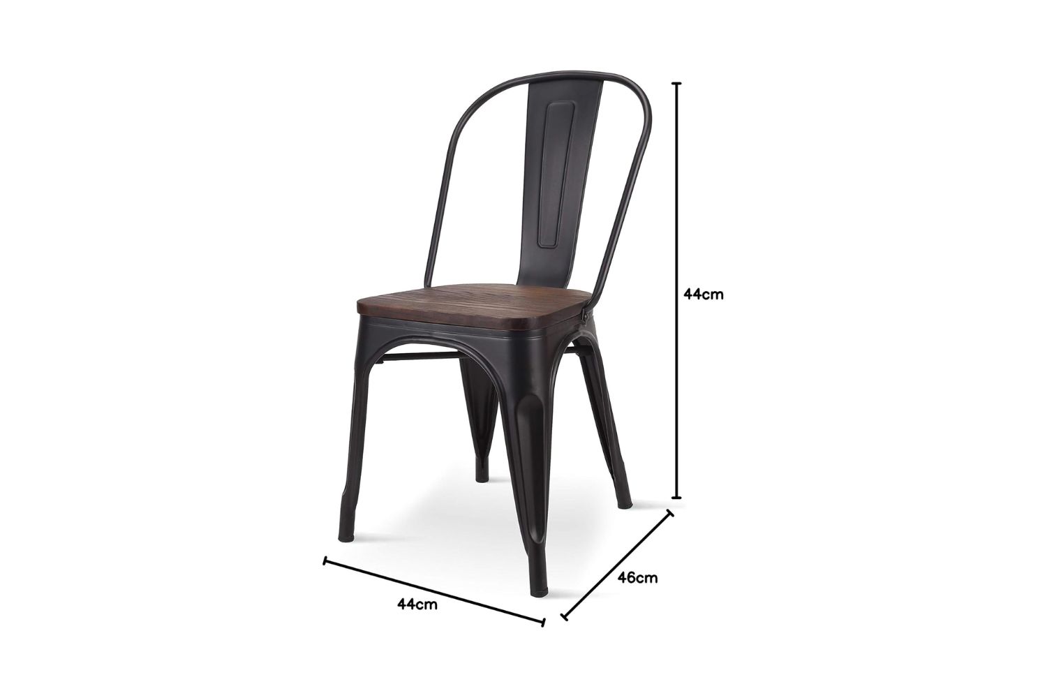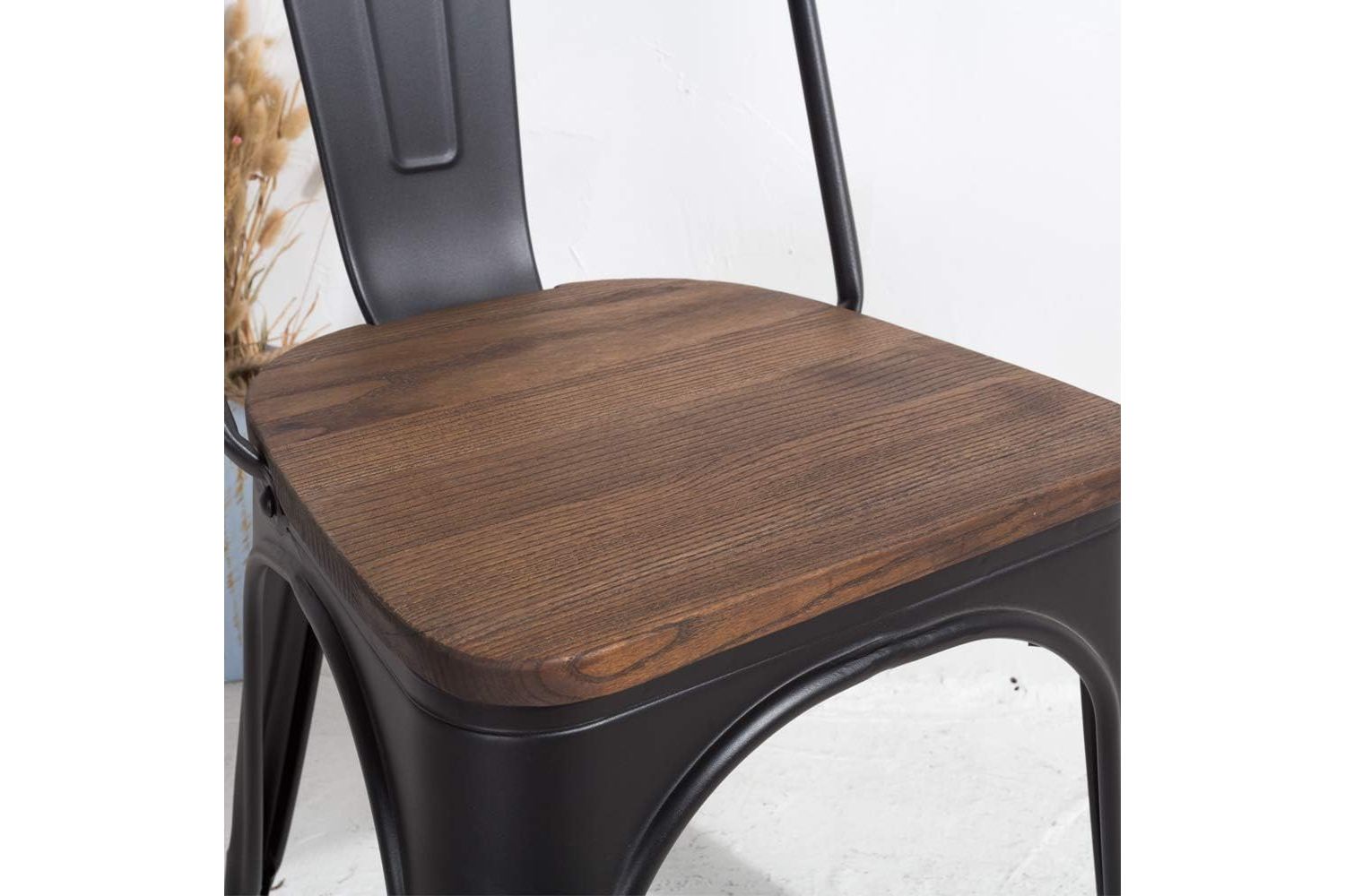 Enhance your dining space with the TOLIX Replica Dining Chair in Matt Black, featuring a powder-coated steel frame and a solid rustic pine wood seat top with unique grains and tones that add a distinctive, stylish touch to any setting. Its stackable design ensures easy storage and space-saving convenience, while the rubber feet protect your floors and provide stability. Ideal for both home and commercial use, this chair combines modern aesthetics with durable, commercial-grade quality, making it a perfect choice for cafes, restaurants, and any stylish dining area.