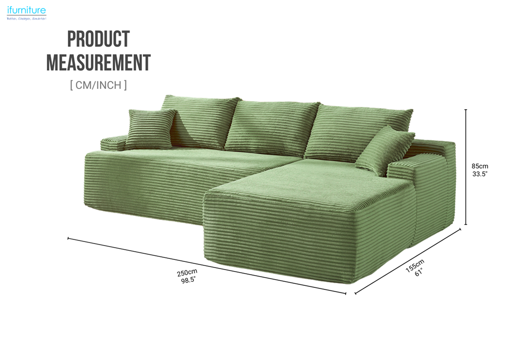 ASHFORD Fabric Sectional Compressed Sofa (Green) - Chaise Facing Right