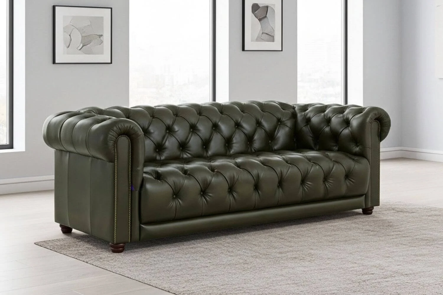 BAMBURGH 100% Genuine Leather 3 Seater Chesterfield Sofa