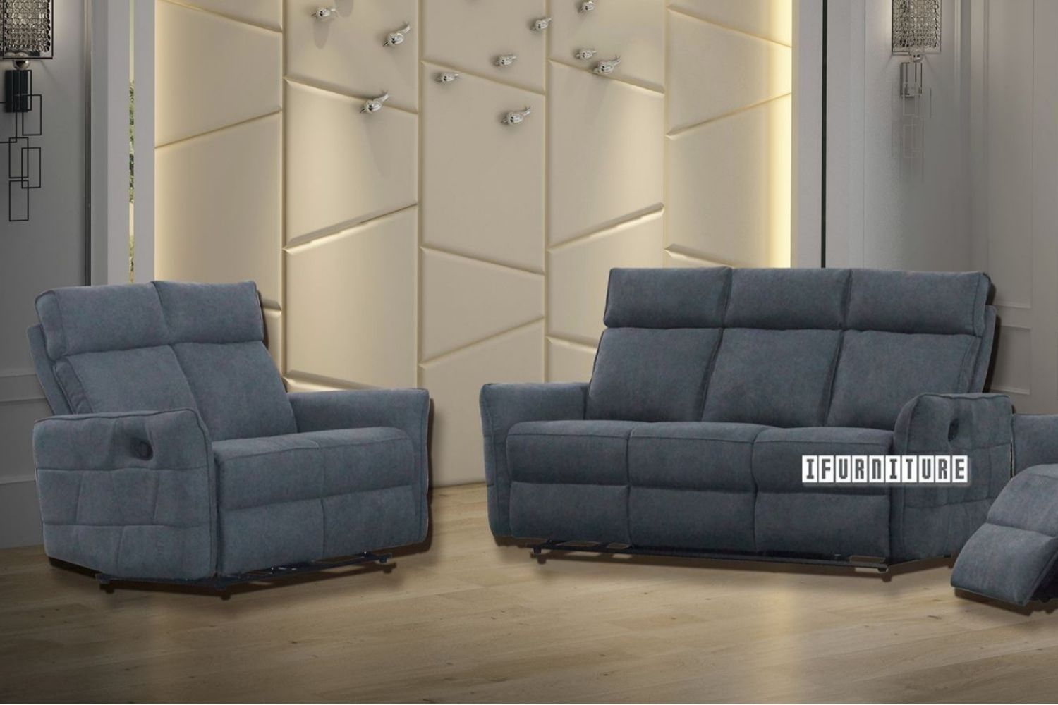This is [BREMEN Reclining Fabric Sofa *Grey - 3+2 Combo Manual Recliner] in product range [BREMEN Reclining Fabric Sofa Range in R+2RR+3RR *Grey]. To check the whole product range please Click this link.