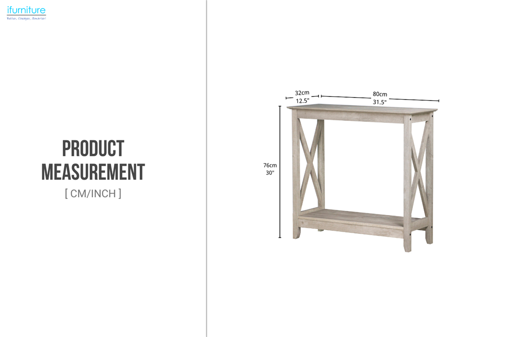 This console table features cross-braced side panels for added stability and a classic farmhouse look. A full-length lower open shelf offers practical storage for baskets, décor, or everyday essentials. Wall attachment hardware is included for enhanced safety, while the versatile design makes it ideal for entryways, hallways, living rooms, or placed behind a sofa.