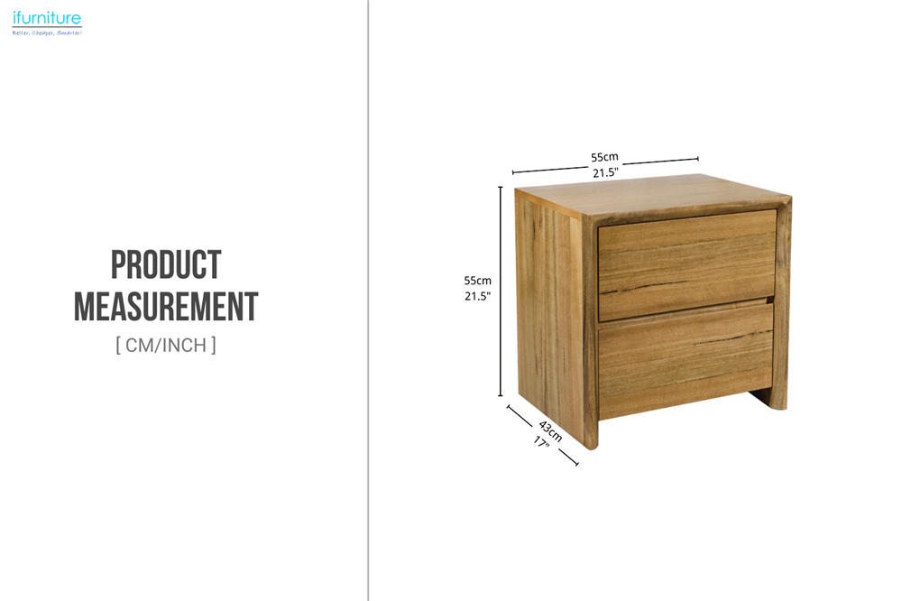 This bedside table, crafted from solid chestnut wood veneer, features naturally flowing grain patterns and warm tones. With two spacious drawers for bedside essentials, it helps keep your space organized. The modern rustic style adds character, making it a perfect addition to any room.