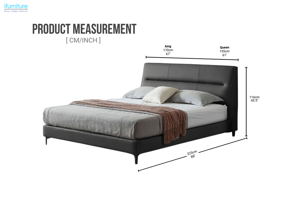 Introducing the CUBA Bed Frame, now available in both Queen and King sizes, showcasing an enchanting Dark Grey finish. Elevate your bedroom with this refined piece featuring a genuine leather headboard with a plush foam-filled design. The durable solid pine slats ensure enduring strength, complemented by contemporary metal hardware for a modern touch. Tailored for both Queen and King sizes, this bed frame effortlessly combines versatility with sophisticated aesthetics.