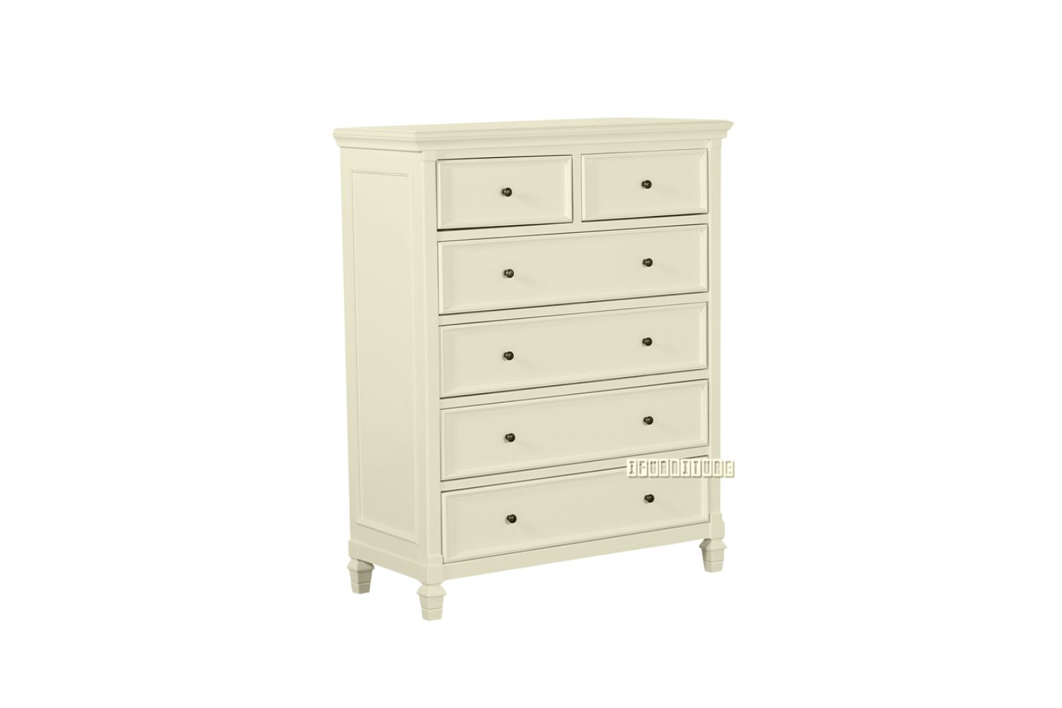 Classic cream white, timeless beauty, ELIZABETH tallboy. The cream white finish with its classic panel designs brings you back to the Jane Austen era. The cream white colour will brighten up your room and the classical panel design is just beautiful. It has 6 spacious drawers to store your dressing-up essentials with 2 small on the top and 4 big just down below. Pair the bedside table with ELIZABETH bed frame, tallboy, dresser, and mirror for a wholesome look!