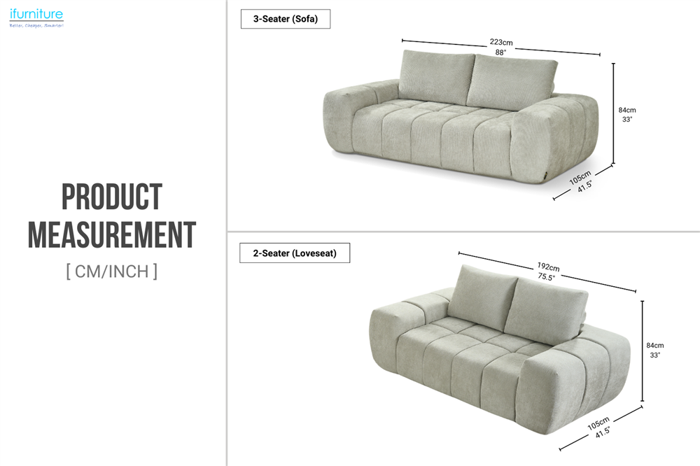 - 3-Seater & 2-Seater Options: Available in both 3-seater and 2-seater configurations, allowing flexible pairing to suit different room sizes and layouts.