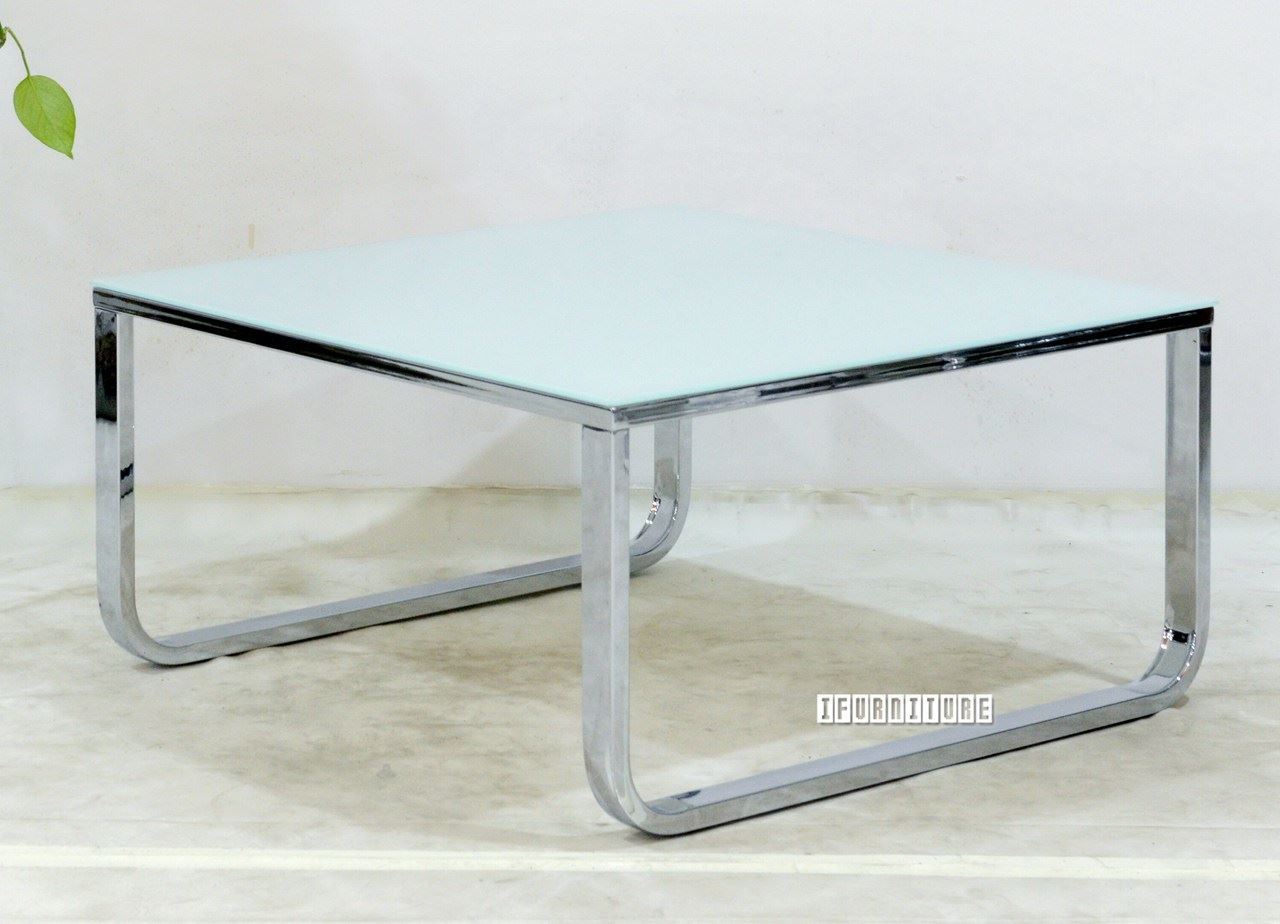 The FAIRFORD Square coffee table has a really sleek look; with brightly chromed, steel legs, and a smart, white, tempered glass top.