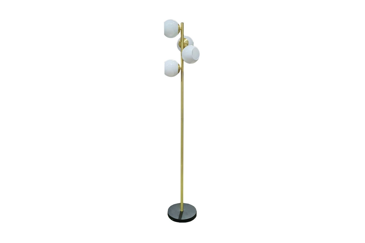 Lit up your space with FLOOR LAMP 536! It has two round glass shades with a straight black leg, gold branch, and a white base. This lamp has a unique look. It will surely complement your black and gold decor and enhance its elegance.