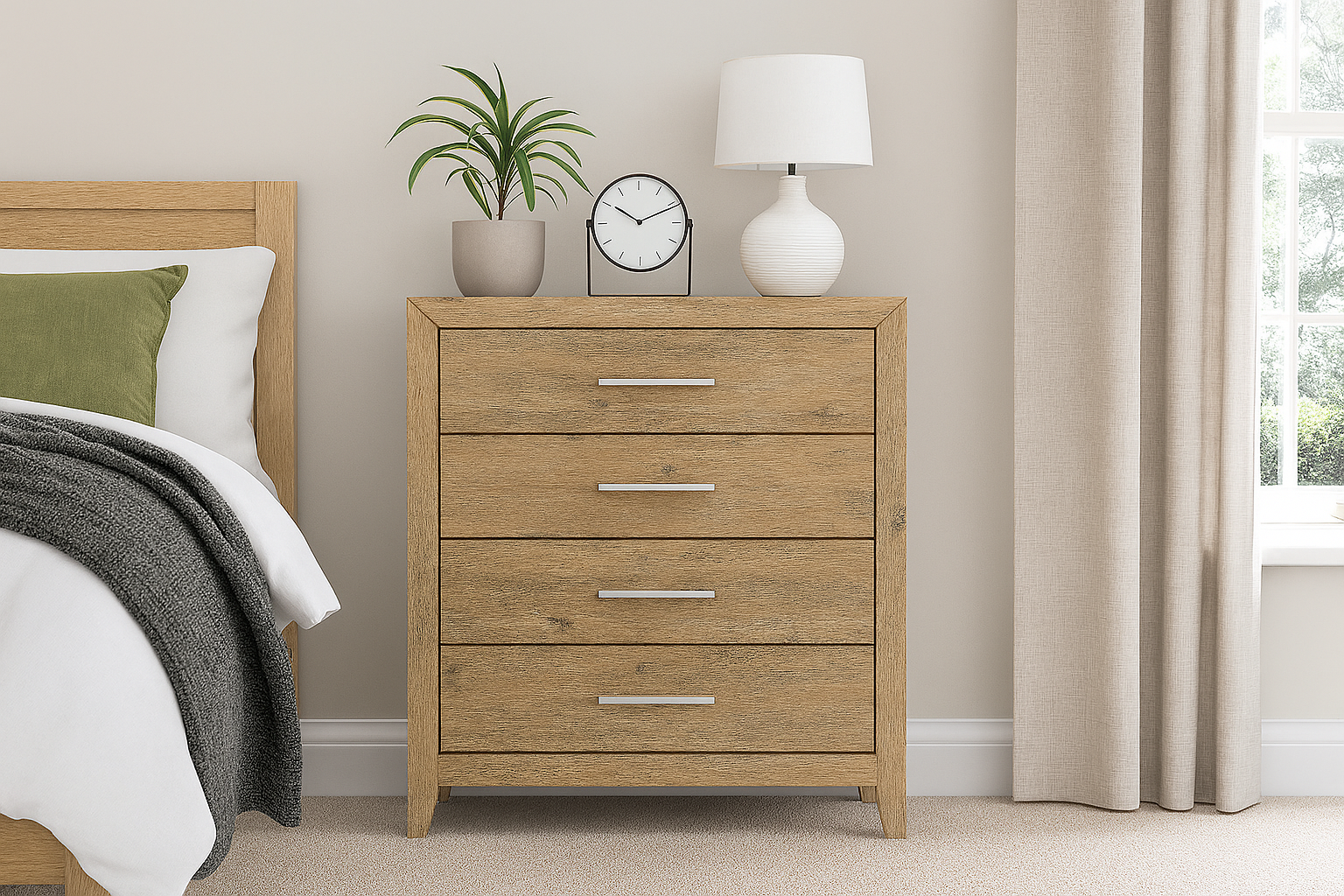 • Ample Storage with Four Drawers: Featuring four spacious drawers, this tallboy provides efficient organization for your clothing and essentials, while the smooth glide drawer mechanism ensures effortless opening and closing for added convenience.