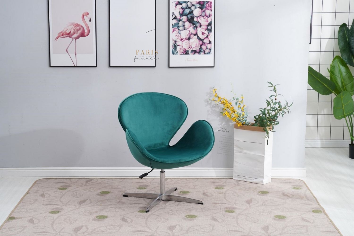 Marrying modern and glamorous elements, this swivel lounge chair makes a statement as it offers a spot to sit in any space. Founded atop a metal pedestal base with a slender footrest and a sleek chrome finish, its frame is padded with foam, upholstered with velvet fabric. Thanks to a convenient lever beneath the bucket seat, you can tweak this stool’s seat height between 16" and 21" with ease.