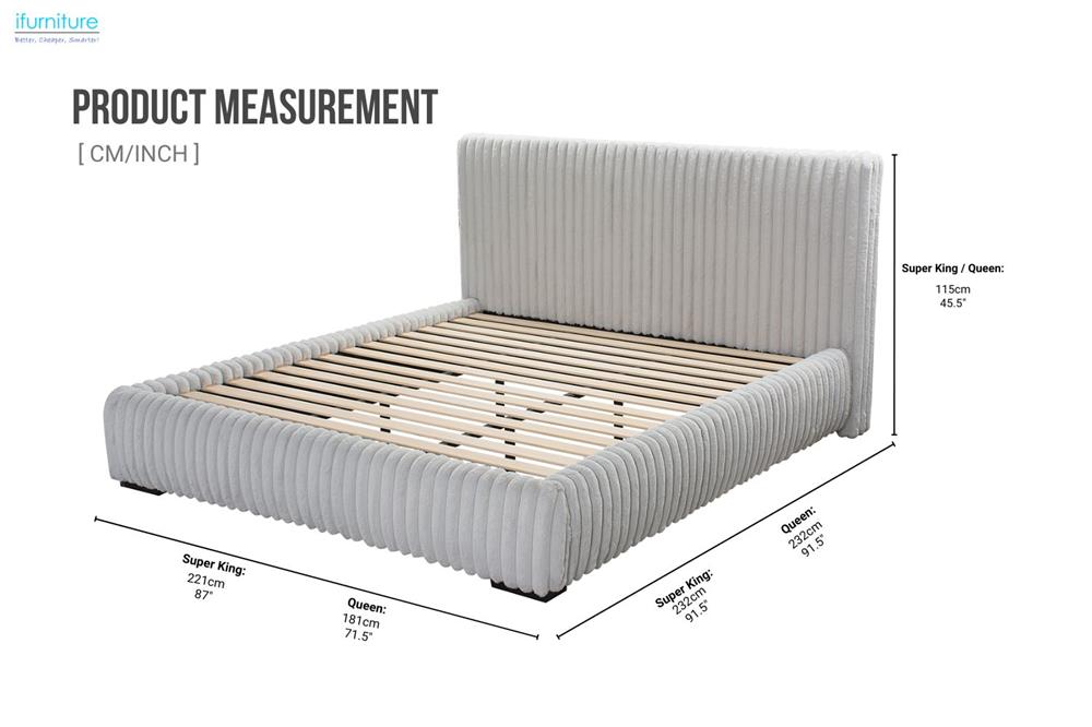 • Luxurious Fabric and Modern Design: The bed frame is enveloped in a premium fabric covering that not only adds a soft and refined touch to your bedroom but also enhances its aesthetic appeal. The unique ribbed texture design brings a contemporary yet cozy feel, making it a stylish focal point in any space.