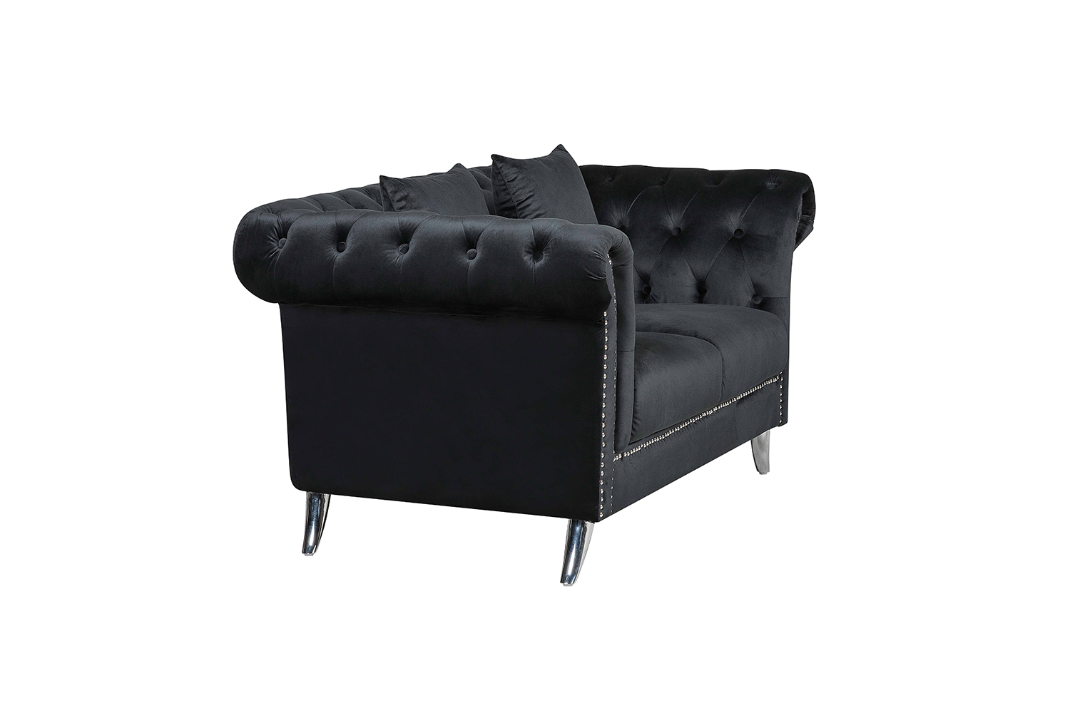 • Luxurious Fabric Upholstery with Chesterfield Design: Upholstered in premium black fabric, the JOLANDA sofa brings a touch of sophistication and timeless style. Its Chesterfield-inspired button tufting on the backrest and arms adds a refined, vintage charm, while ensuring a smooth, comfortable feel.