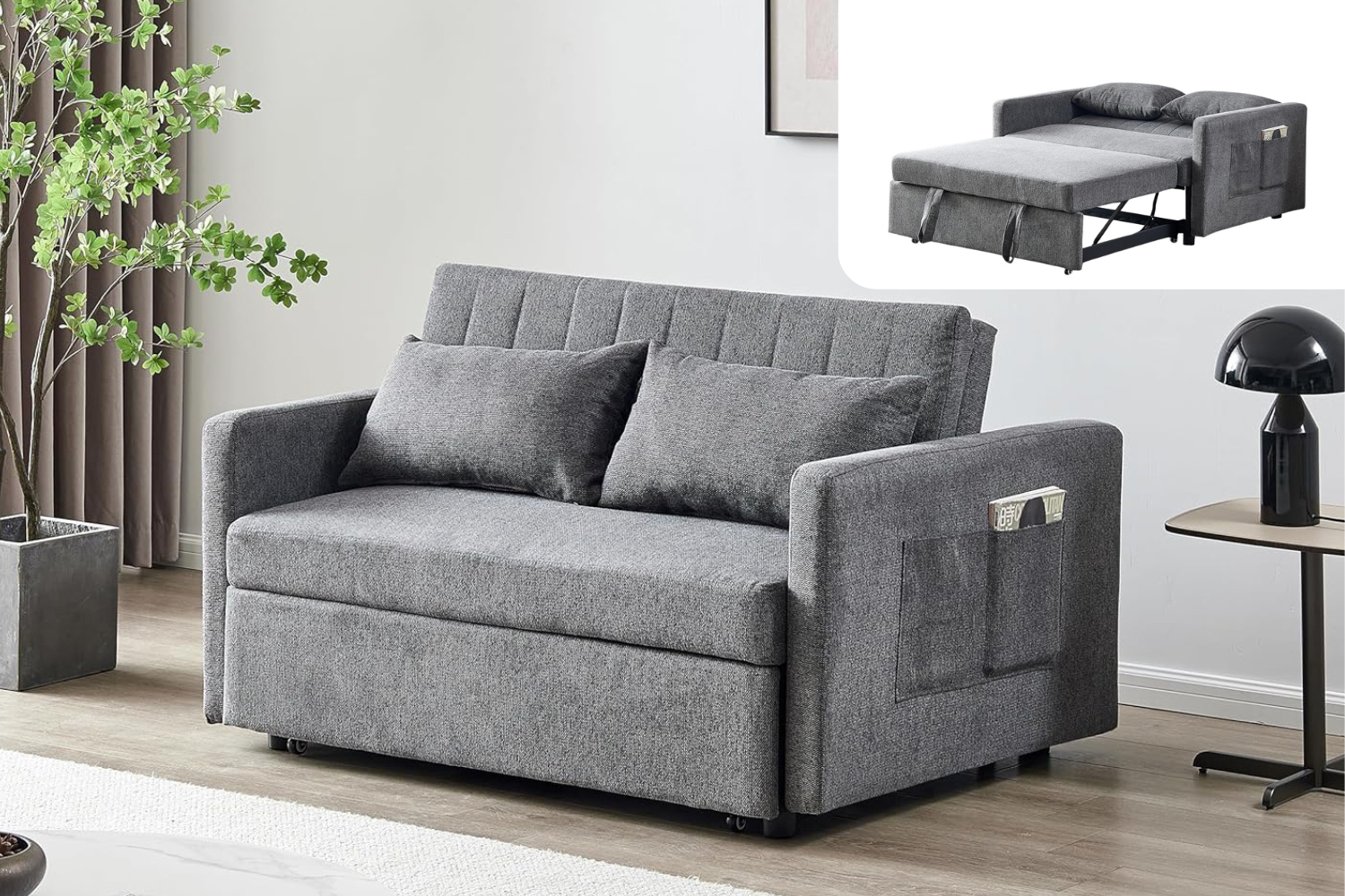 • Convertible Sofa Bed: Easily transforms from a compact sofa into a comfortable bed, ideal for guests or multifunctional living spaces.