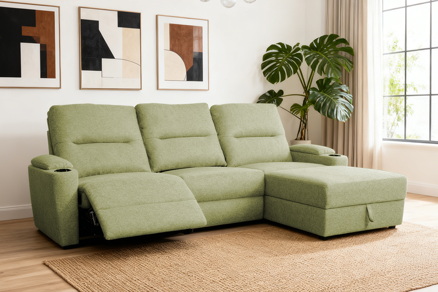 The KIMBERLY Power Reclining Sectional Sofa offers an exquisite combination of comfort, style, and functionality. Crafted with breathable fabric, engineered wood, and soft foam, this sectional ensures ultimate relaxation and durability. Featuring a power reclining mechanism for effortless lounging and a convenient drop-down console with cupholders, this sofa makes the perfect addition to any modern living room.