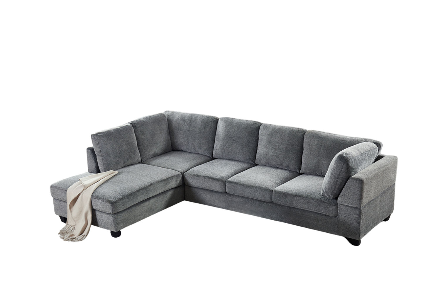 LIBERTY Premium Sectional Sofa (Grey) - Chaise Facing Right with Storage Ottoman