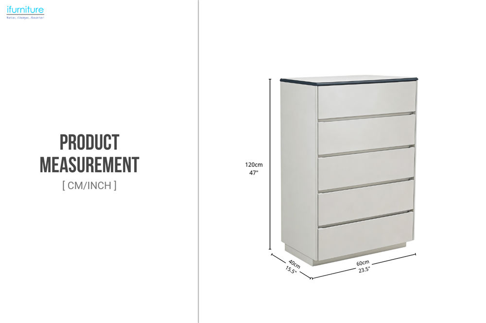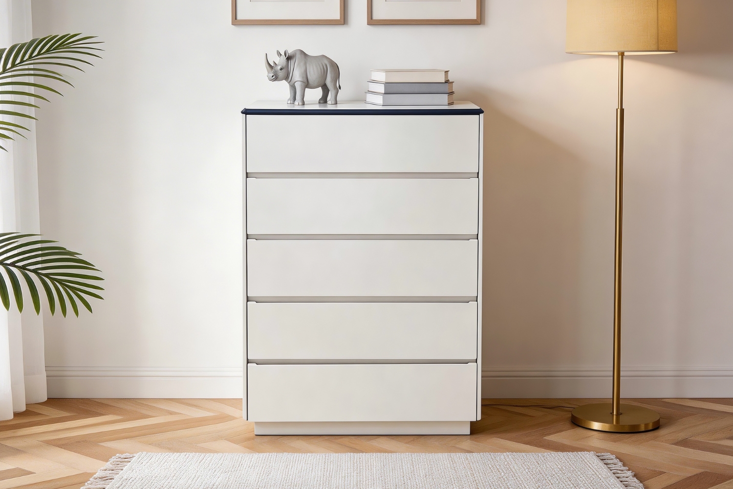 This 5-Drawer Tallboy features a durable engineered stone top, offering scratch and stain resistance for lasting durability. With five spacious drawers, it provides ample storage for clothing, accessories, and other essentials. Its sleek, modern design with clean lines makes it a perfect fit for contemporary and minimalist interiors.
