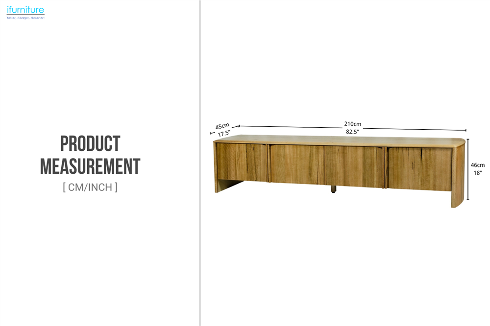 Crafted with solid chestnut wood veneer, this TV unit showcases rich natural grain and warm tones. Four door storage keeps media devices and essentials neatly concealed, while rounded tabletop edges add subtle refinement and safety. The hidden handle enhances its clean, modern look, beautifully balancing the warmth of the natural wood.