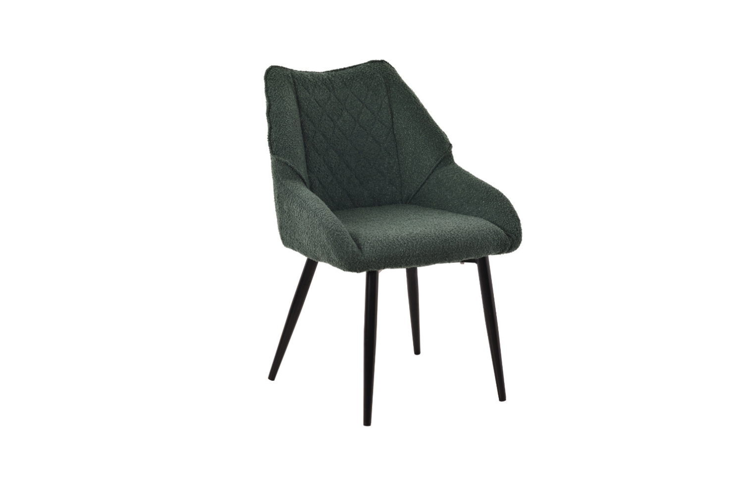 Upholstered in soft, textured fabric, this dining chair adds warmth and visual depth. The diamond-tufted, wraparound back offers comfortable support, while sturdy metal legs provide stability. Its clean, contemporary design suits modern dining spaces and cafés.