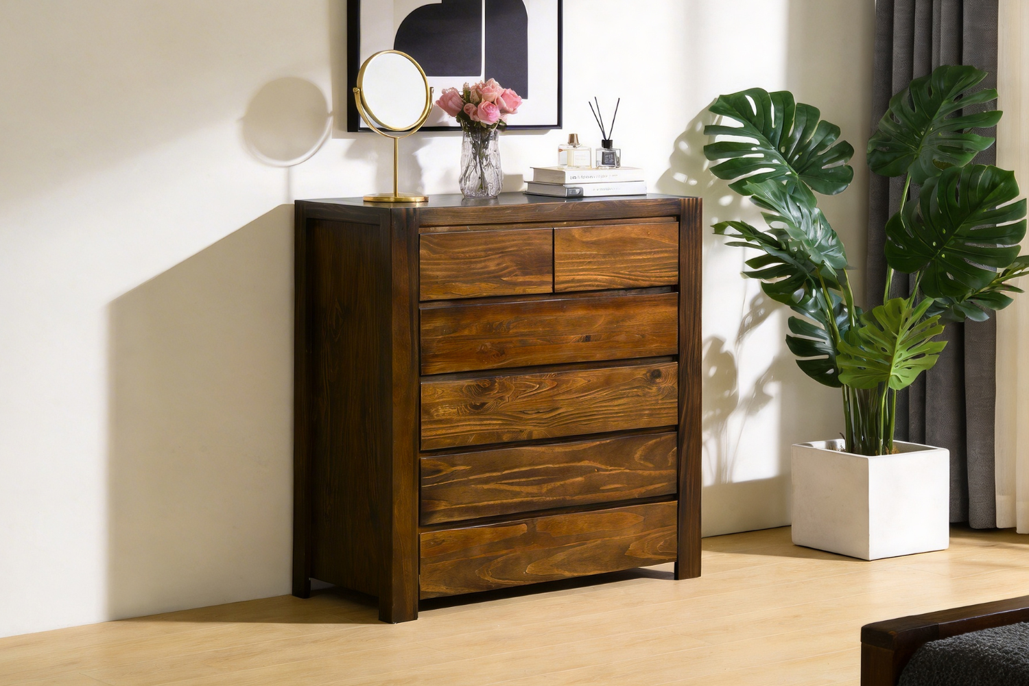 Invest in the MALAGA Storage Bed for a seamless blend of style and functionality. Its queen size frame with integrated storage, durable walnut and acacia wood construction, and convenient storage solutions offer both practicality and luxury. Enjoy optimal mattress support, ample storage space, and long-lasting reliability, making it a smart investment for your bedroom.