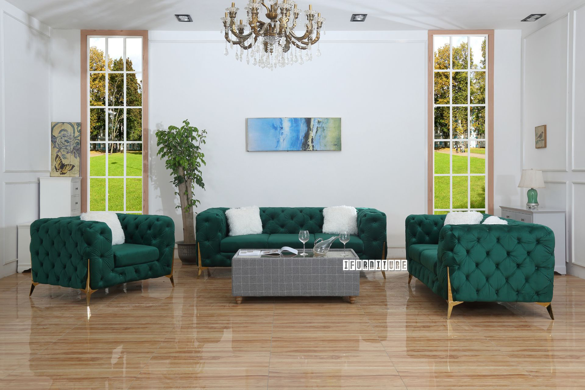 This is [MANCHESTER - 3+2+1 Set *GREEN VELVET] in product range [MANCHESTER 3+2+1 Button-Tufted Fabric Sofa Range *Green Velvet]. To check the whole product range please Click this link.