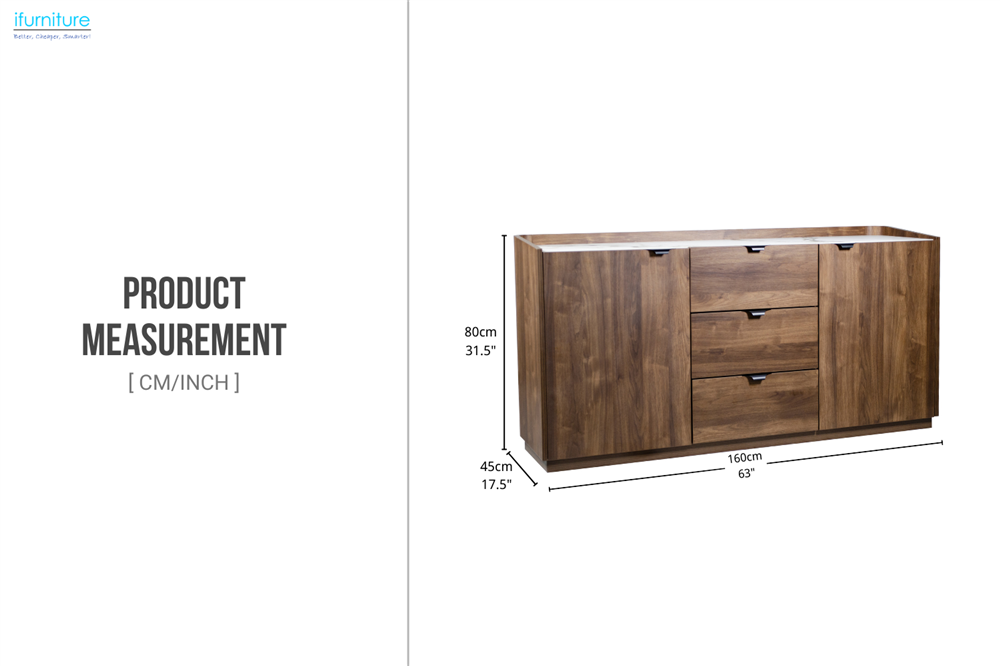(Out of Stock) MERRINA 160 2-Door 3-Drawer Storage Cabinet/Sideboard with Sintered Stone Top