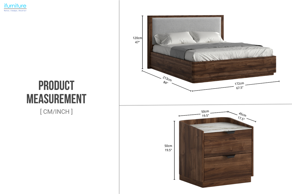 Elevate your bedroom with the timeless charm and smart functionality of the KENORA Bedroom Combo Set. Blending rustic character with modern convenience, this weathered oak tone is crafted to bring warmth, durability, and seamless organisation to your space. From the bookshelf-style headboard with built-in lighting to the smooth-gliding drawers and fully finished interiors, every detail is thoughtfully designed. Available in 4-piece, 5-piece, and 6-piece sets with your choice of Queen size, KENORA offers customizable elegance for any bedroom size or lifestyle.