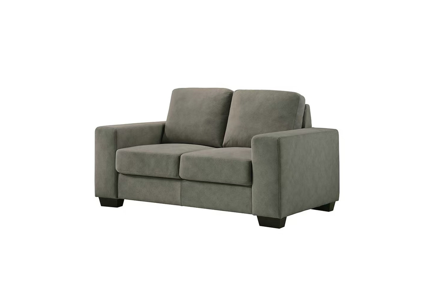 The Moda sofa features sleek square armrests and soft, durable grey fabric upholstery, offering a timeless design that complements various décor styles. Its thick, comfortable seat and back cushions provide excellent support for extended lounging, with options that suit different space needs, making it ideal for both home and office use.