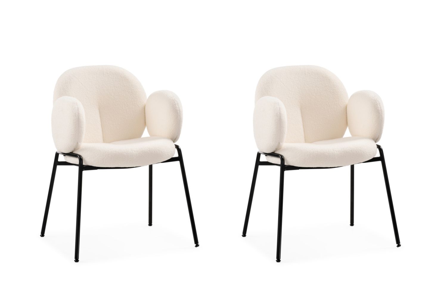 (Out of Stock) OLA Boucle Fabric Armchair with Black Legs (White) - 2 Chairs in 1 Carton