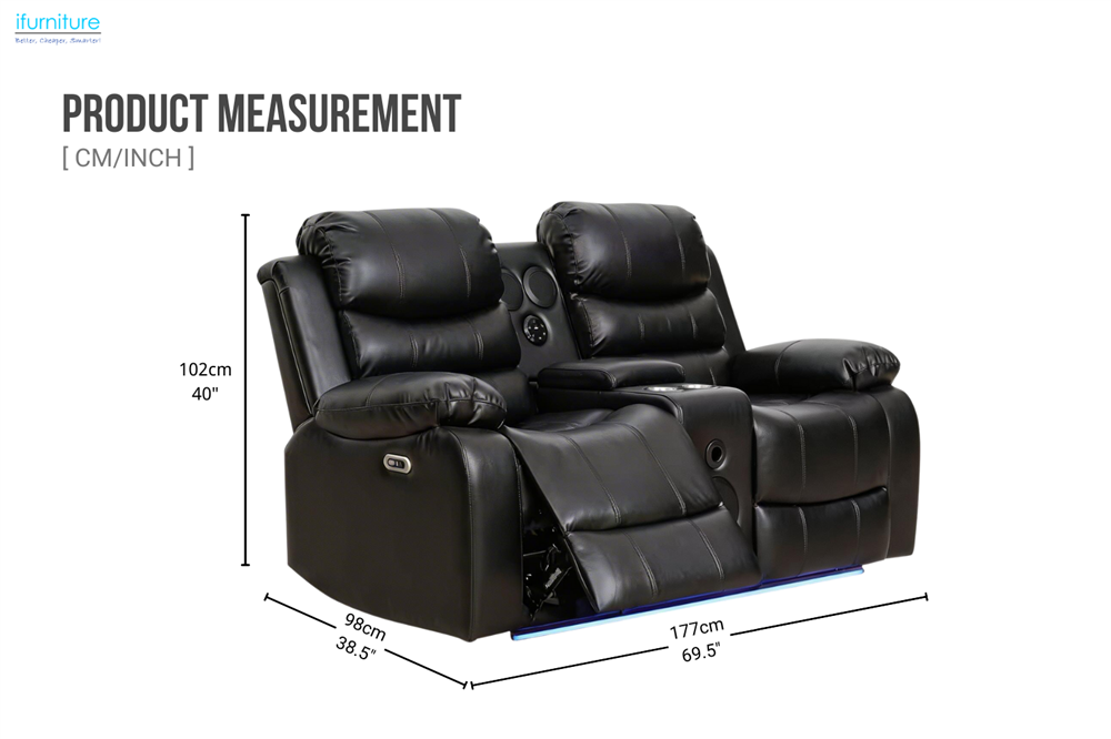 This 1-seater sofa features smooth electric reclining up to 150°, durable air leather upholstery, and a solid poplar wood frame for everyday comfort and support. Built-in USB charging and subtle blue LED base lighting add modern convenience and a relaxed home theatre feel, making it an ideal choice for personal lounging.