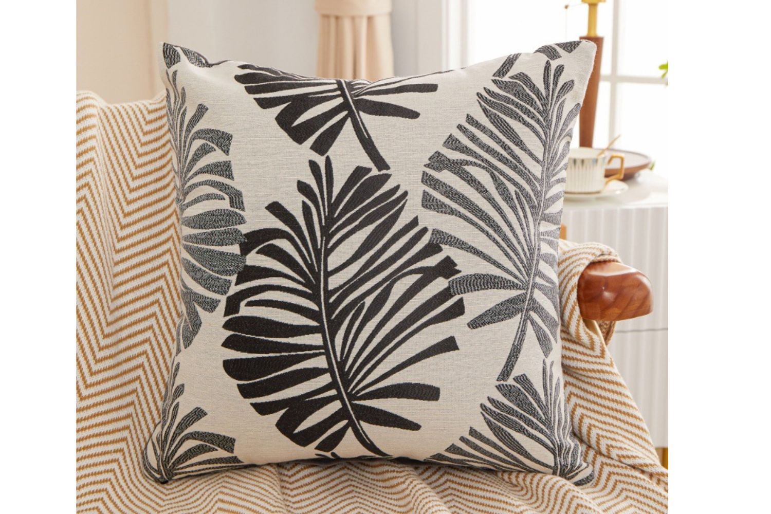 - Modern and minimalist style with a square-shaped throw pillow