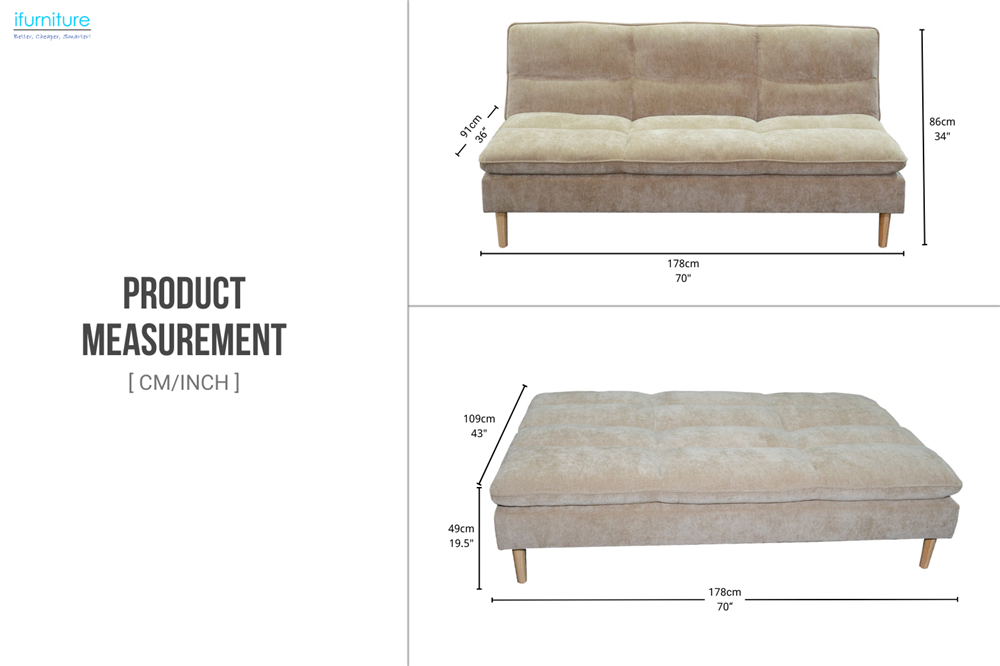 PASHA 3 Seater Sofa Bed (Light Brown)