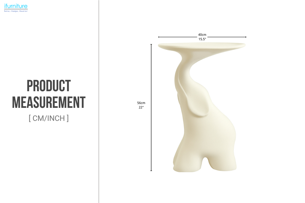 This sculptural side table features an abstract elephant-inspired base crafted from premium FRP, offering a lightweight yet durable structure with a smooth high-gloss finish. Both functional and artistic, it serves as a stylish accent piece for modern homes, hotels, cafés, and galleries.
