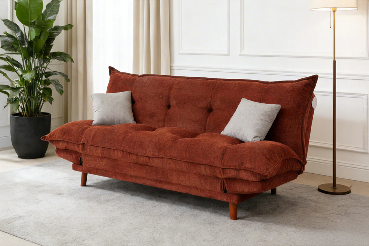 This convertible sofa bed easily transforms from a sofa to a bed. It features an adjustable backrest and side sections, with thick tufted cushions for comfort. Ideal for living rooms, guest rooms, apartments, or dorms.