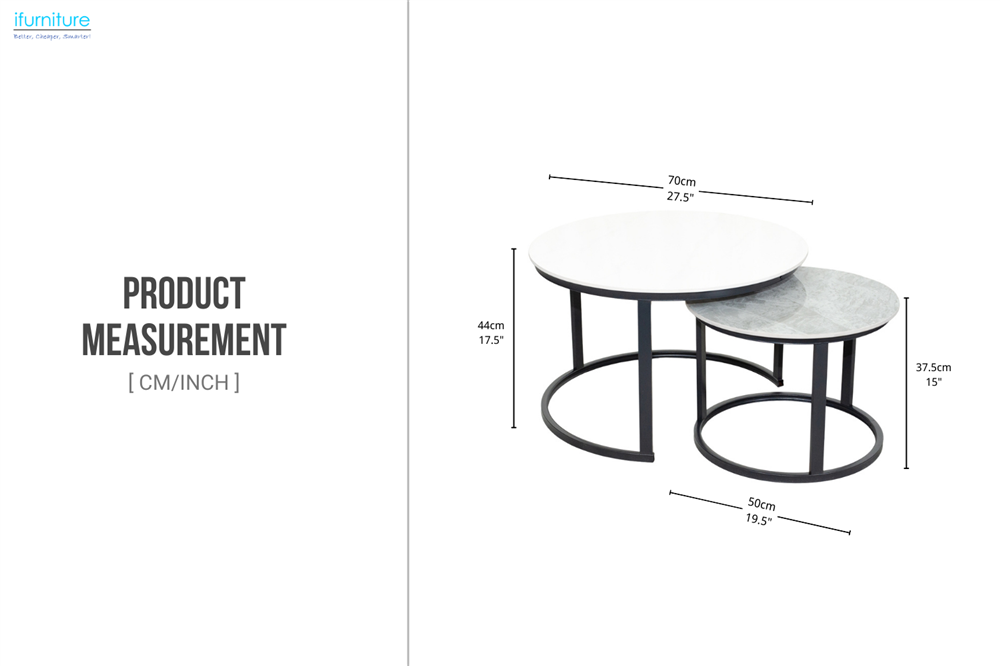 RADIUS Sintered Stone Table Top Nesting Coffee Table (Off White&Grey)