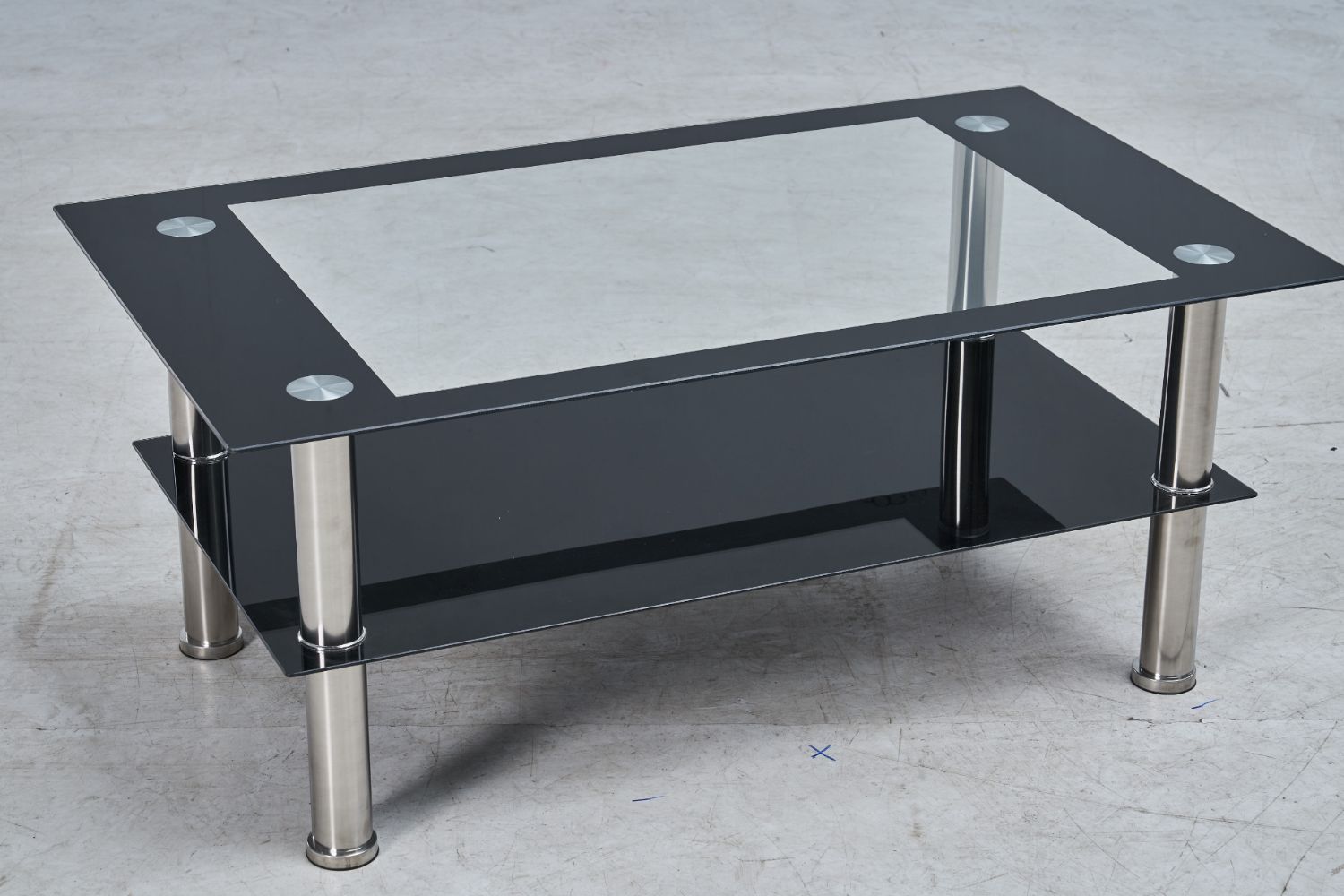 This glass top coffee table is a stylish and modern addition to any living space. The table features a clear glass top that provides a sleek and elegant look, allowing you to showcase your decorative items or coffee table books. The glass is also easy to clean and maintain, making it perfect for households with children or pets.