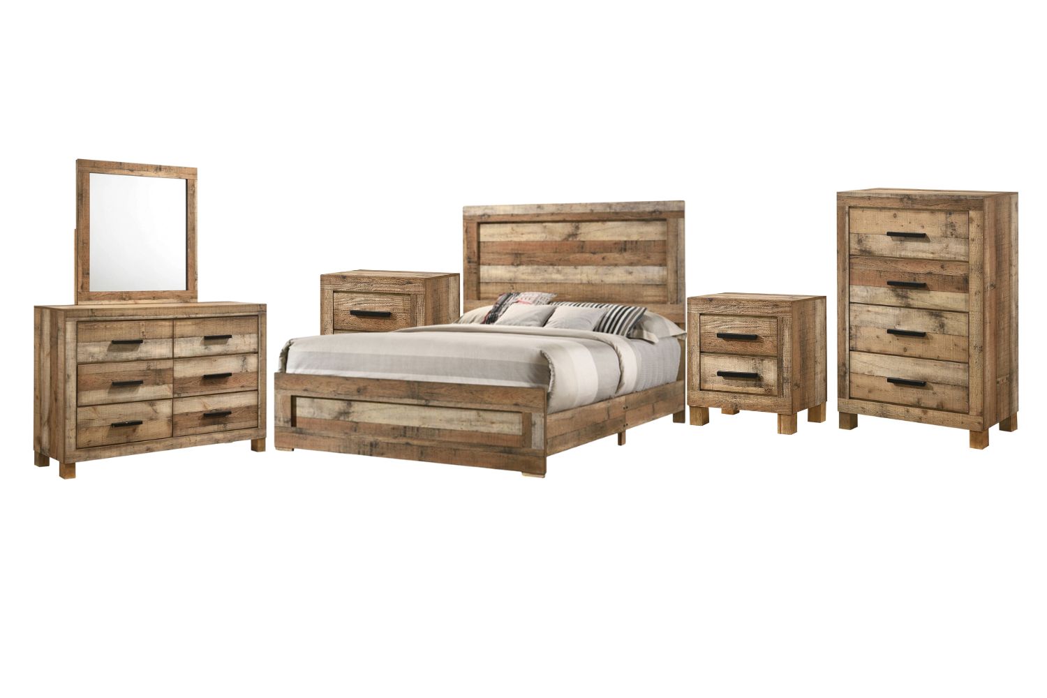 The ROLAND Bedroom Set, with its natural wood appearance, offers a complete bedroom solution to elevate your living space. It includes a Queen Size bed frame, providing added convenience for your bedroom space. Constructed from wood products with simulated wood grain laminates, this set exudes rustic charm while ensuring durability. The rustic sand finish enhances its overall aesthetic appeal, creating a cozy atmosphere in your bedroom.