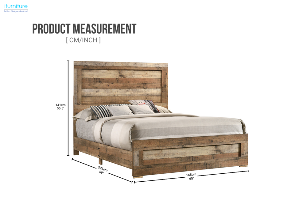 The ROLAND Queen Size Bed Frame boasts a natural wood appearance, featuring simulated wood grain laminates and a rustic sand finish that adds rustic charm to your bedroom. Its robust construction ensures long-lasting durability and timeless style. This queen-size bed frame offers a spacious and comfortable sleeping space while enhancing the aesthetics of your bedroom with its rustic appeal. Elevate your bedroom decor with the ROLAND Queen Size Bed Frame, marrying functionality and rustic elegance in one piece.