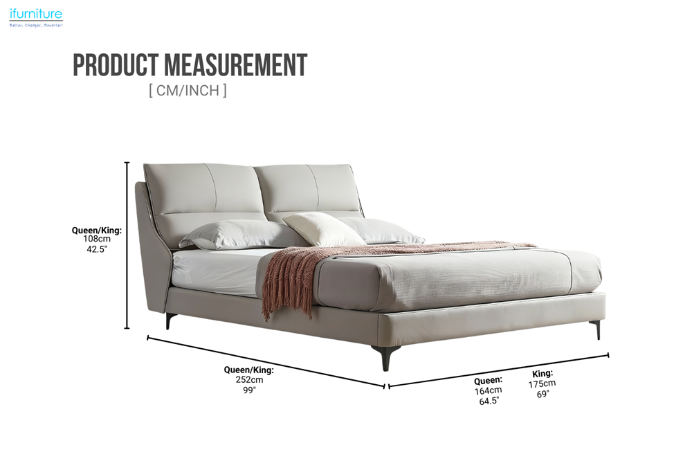 The bed frame boasts a robust solid wood construction and reinforced with reliable metal hardware, ensuring unparalleled durability and years of steadfast support. Tailored to accommodate both Queen and King sizes, the ROMEO Bed Frame seamlessly combines functionality with a touch of luxury, making it an irresistible choice for those who seek both style and substance. Redefine your sleep sanctuary, embrace the chic light grey design, and treat yourself to the indulgence of the ROMEO Bed Frame. Elevate your space, elevate your sleep.