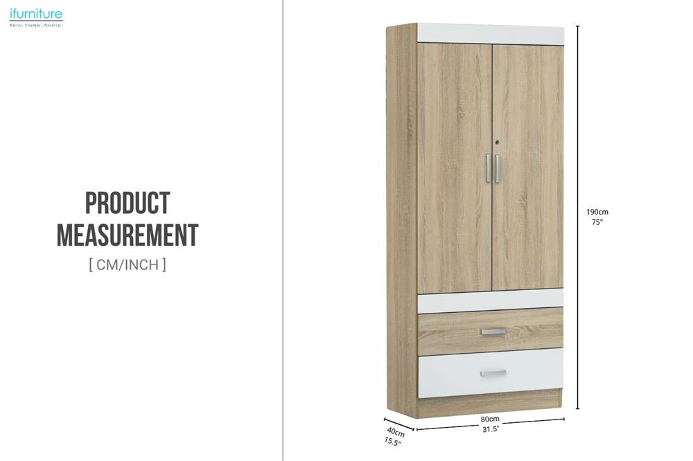 RYDEN 2-Door 2-Drawer Wardrobe